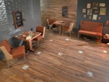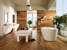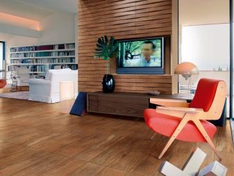 Такива подови и стенни покрития ще изглеждат солидни и могат да се превърнат в акцент във всеки интериор. Освен това в комбинация с подово отопление, това покритие ще бъде почти неразличимо от естественото дърво, затова често се използва за подови настилки в жилищни помещения.
