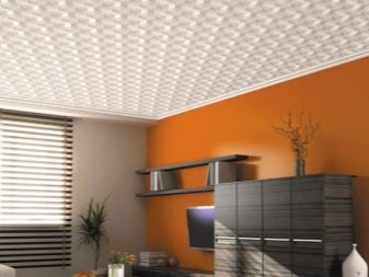 Таванските плочки трябва да се отбележат отделно. Обикновено това са модели от пяна, които са доста леки и лесни за инсталиране. С тяхна помощ таваните в жилищните помещения са завършени..