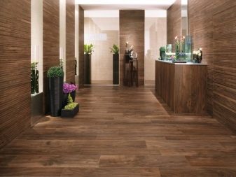 По друг начин такива модели се наричат дървена керамика. По правило всеки уважаващ себе си производител на плочки представя линийка за дърво. Освен това можете да намерите както малки парчета елементи от плочки за паркет, така и по -големи и масивни елементи, които имитират дъска, паркет или ламинат..