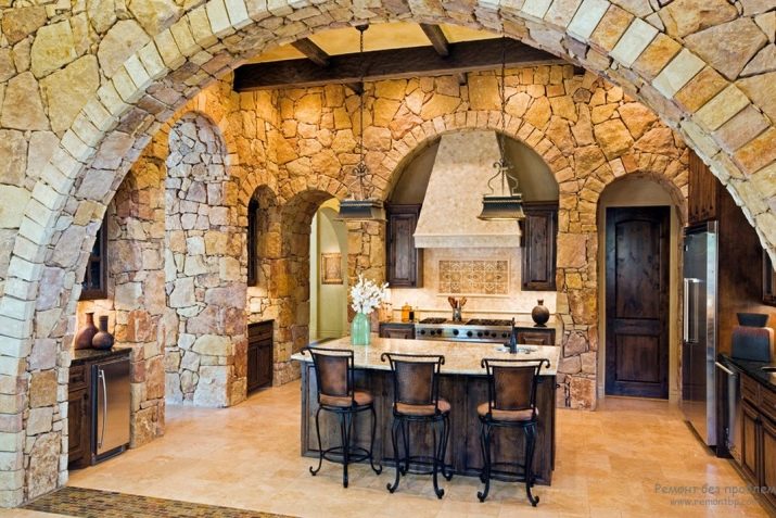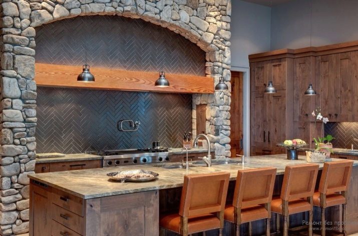 Можете да украсите част от интериора, отделна стена, фрагмент от стена, част от стаята около камината с каменни плочи. Те могат да се използват само в тези стаи, където гостите са често – хол, кухня, трапезария, кабинет, коридор, билярдна зала, басейн.
