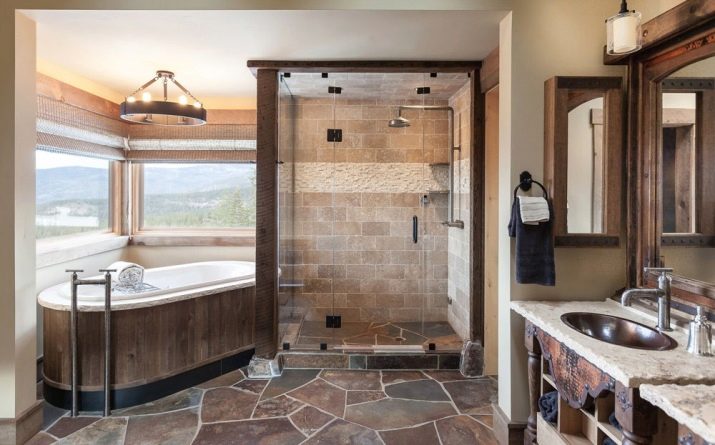 Но можете да използвате и по -груби плочки, които ще създадат имитация на дом, построен от естествени материали. Такива плочи са подходящи за голямо разнообразие от варианти в етно стил, имитация на древността, семейни имоти от различни епохи и народи..