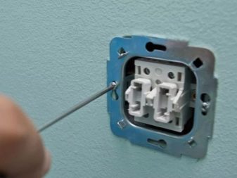 Съвременният превключвател има гладка повърхност, закрепването е скрито. Първата стъпка е да извадите ключовете на закопчалката. Ако не можете да направите това ръчно, тогава трябва да използвате отвертка. След като се премахне фиксирането на превключвателя, проверете липсата на напрежение върху проводниците. След това трябва да изключите проводниците.