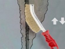 - Грундовата смес лесно прониква във всякаква дебелина. За нанасяне на грунда е достатъчна четка или валяк. Сместа от грундове, когато се нанася върху повърхността, образува защитен филм, освен това изравнява равнината, почиства основата от малки отломки.