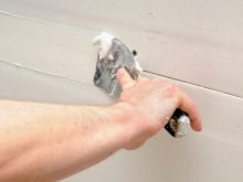 След това трябва да обърнете внимание на шевовете между платна.. Важно е да ги замажете, в противен случай дефектите ще бъдат видими през тапета.. Най-добре е да залепите нетъкан тапет върху този тип повърхност, тъй като тяхната плътност ще скрие възможните малки неравности и грапавост.