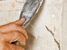 Шевовете и пукнатините са запечатани зад грунда. Дълбоките пукнатини обикновено се увеличават, обработват се с пръст и се поправят с циментова замазка. Наложително е да се провери, дали останалата част от мазилката изостава от стената. Най-вероятно ще трябва да се отстрани с чук, за да се избегне повторно изравняване с мазилка в бъдеще..