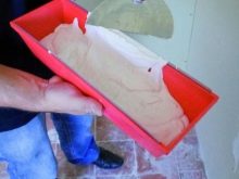 - квадратен контейнер за замазка. Тази форма помага да се използва сместа за покриване на стени възможно най -икономично..