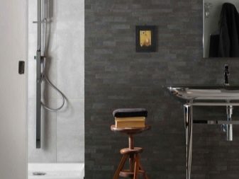 Също така, керемидите от порцеланов камък от тази колекция са перфектно съчетани в декорация с декоративни елементи от метал, стъкло, дърво..