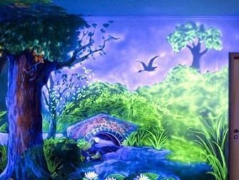 Луминисцентните тапети са доста скъпи, но се използват активно от собствениците както на градски апартаменти, така и на селски къщи. Този декор ще изглежда страхотно на дневна светлина, радвайки окото с реалистични 3D изображения, излъчващи невероятна светлина в тъмното..