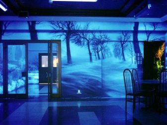 Светещи тапети могат да се използват за украса на кафенета, клубове и дори офис помещения. Поради способността на материала да променя външния си вид в зависимост от времето на деня, стаята ще изглежда разнообразна, което означава, ще има благоприятен ефект върху резултата от работата на служителите.