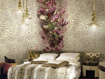 - Богат артистичен вид – стилен леопард и дива растителност – ще допълни всяка малка спалня, която има добро легло. Изображението ще бъде допълнено с лампи от метал със златни листа.