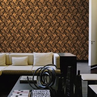 Дизайнерските покрития вървят добре с дивани и масички за кафе. Ако в хола има минимум мебели, стенен панел с цветя ще запълни пространството. Ако в стаята има гардероби, повтарящите се фонове ще подчертаят очертанията на мебелите. Спалня с екстравагантен фон ще изглежда само с луксозни детайли (полилеи в арт деко, одеяло от кожа, рафтове със сувенири, огледала).
