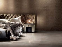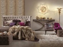 - Интериорните решения на лидера на модната индустрия изглеждат прости в каталози, но по стените, в комбинация с мебели, фоновете играят с цвят и текстура. Лесно е да се оцени как блестящият блясък на стените, текстилът на килима и възглавниците се комбинират с топлия цвят на луксозните полилеи, тигърът, излизащ от стената, създава екстравагантен акцент.