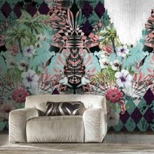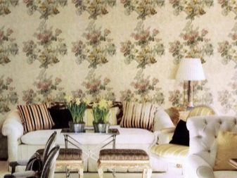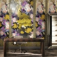 Дизайнерските покрития вървят добре с дивани и масички за кафе. Ако в хола има минимум мебели, стенен панел с цветя ще запълни пространството. Ако в стаята има гардероби, повтарящите се фонове ще подчертаят очертанията на мебелите. Спалня с екстравагантен фон ще изглежда само с луксозни детайли (полилеи в арт деко, одеяло от кожа, рафтове със сувенири, огледала).