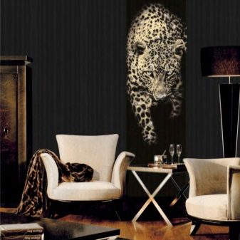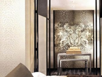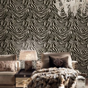 В модерен стил почти всеки модел е допустим, но той трябва да бъде ясно структуриран, тоест изображението е поставено в рамка, съседството на обилни цветове със скромни покрития е по -подходящо. Ако мебелите на вашия интериор са в модерен формат, използвайте панели от Cavalli в комбинация с обикновен тапет.