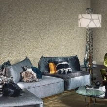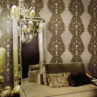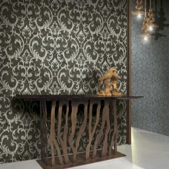 Екстравагантните стенни фонове не съжителстват добре с плочки или декоративна мазилка; покрития с шарка от друга марка няма да работят с тях. Ако има нужда от комбинация, можете да изберете неутрални монохромни фонове от същата или по-бюджетна марка, винаги от същите материали (винил или нетъкан текстил).