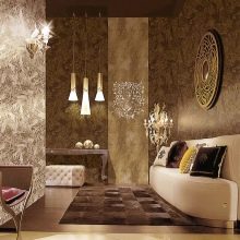 Необичайният фон изглежда зле с прости предмети от бита. Въпреки това, обикновеният текстуриран фон може да бъде подходящ за всяка стая, нюансите на бели или пясъчни тонове са универсални, те могат да отговарят на всички нюанси на кафяво..