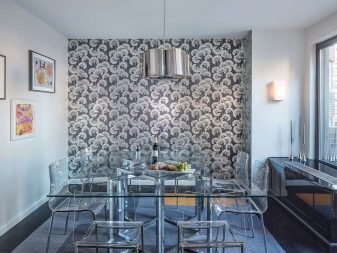 Едноцветните мебели се считат за добро решение за такива тапети..