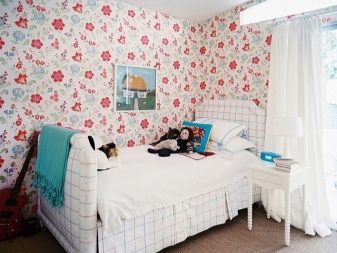 Деликатни флорални орнаменти са един от най -интересните варианти за декориране на детска стая за момичета. В зоната за спане на стаята за момчета е по -добре да използвате покрития с леки и ненатрапчиви цветни щампи..