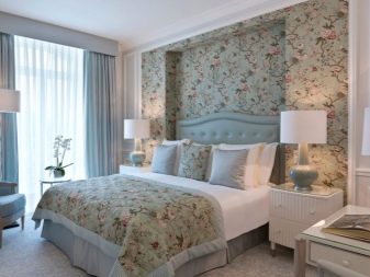 Има много начини да използвате цветни покрития в спалня. Най-често срещаният вариант е да украсите интериора с флорални орнаменти в пастелни цветове. Леките тапети с малки букети цветя, които са почти невидими на основния фон, ще направят спалнята по -деликатна и ще гарантират приятна и уютна атмосфера в нея.