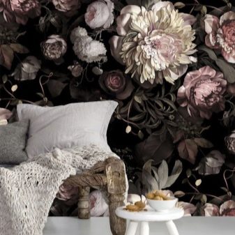 Изключително важно е веднага да вземете решение за желания фон.. Например, черен фон с обемни цветя (стилни божури, луксозни орхидеи или ириси) е подходящ само за големи апартаменти.