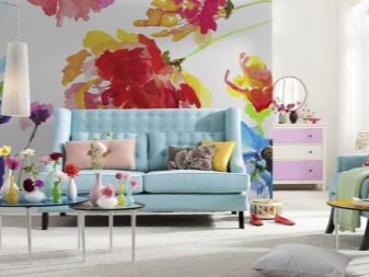 - Трябва да се постигне определен баланс между закачливите и неутралните елементи на интериора. Ако тапетът с цветя е много видим, другите мебели не трябва да привличат основното внимание..