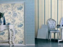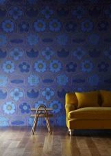 - Можете също така да залепите такива покрития, които имат различно изображение – нанесете редуващи се цветове и вертикална лента. Такава идея обаче не е подходяща за всяка стая, а само за тези, които са декорирани в ретро стил..