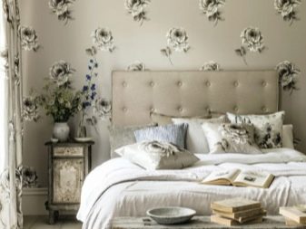 Светлите тонове на тапети с цветни композиции, често едва забележими на общия фон, ефективно ще украсят стените в спалнята и ще създадат атмосфера на релакс.