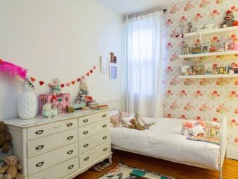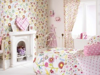 Деликатни флорални орнаменти са един от най -интересните варианти за декориране на детска стая за момичета. В зоната за спане на стаята за момчета е по -добре да използвате покрития с леки и ненатрапчиви цветни щампи..