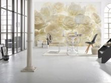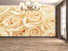 Опциите за ролки или стенописи с бели рози са подходящи за почти всяка стая. Парцели от бели рози ще внесат нотка на нежност и лекота в спалнята. Голяма пъпка с капки роса и паднали венчелистчета ще изглежда страхотно в банята. Мразовити шарки от малки снежнобяли цветя са подходящи за кухнята..