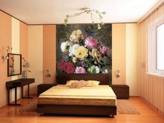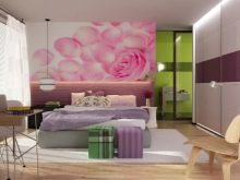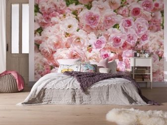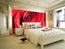 В спалнята ще бъде подходящ панел от средни многоцветни рози, но ролковите тапети с рози в цял ръст ще изглеждат страхотно..