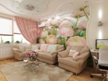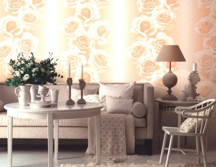 Ако таваните са ниски, тогава моделът трябва да бъде удължен с посока нагоре. Мебелите за такива тапети трябва да бъдат едноцветни, а цветът му да е в хармония със сянката на тапета. За хармонично възприемане на интериора е необходимо да изберете подходящите аксесоари за стаята с тапети от рози. Това могат да бъдат покривки, завеси, покривки и други предмети в стаята..