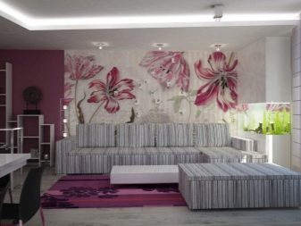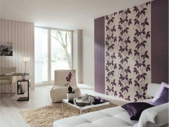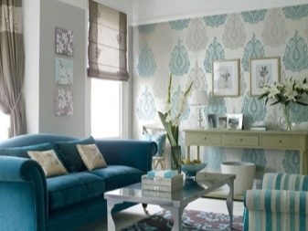 - смело решение е изборът на два различни типа модели тапети и тяхната комбинация с обикновени повърхности. При този сценарий интериорът придобива хармония само поради факта, че във всяка от рисунките има цвят на монохроматична част от стаята..