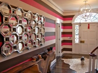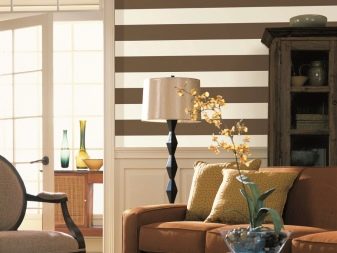 - хоризонталната комбинация е насочена към оптично разширяване на пространството. Границата между текстурите е хоризонтална линия малко под средата на стената или в горната й част. Тази лента може да бъде подчертана с первази и други акцентни текстури. В долната част често присъстват вертикални ивици, докато в горната можете да наблюдавате абстрактно орнамент, съвпадащ по цвят с тапета отдолу;