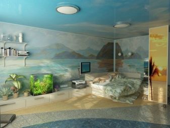 - интересен вариант е да декорирате стените с помощта на 3D техника. Използва се за създаване на триизмерни пейзажи по повърхността на подовете, за увеличаване на пространството на помещението или за допълване на интериорната концепция с очарователен модел..
