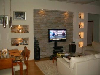 - в някои концепции е необходимо да се съсредоточи върху конкретна стена. Именно за това се изолира с различен тип покритие. Поради разликата с останалите стени, желаната част от пространството неволно привлича вниманието;