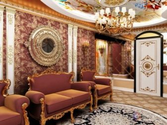 - Барок означава създаване на акцент върху една стена с помощта на тапети със сложен богато украсен модел. Покритието често има преливаща се повърхност, със златно или бронзово покритие. Такива тапети най -често се комбинират със сдържани бежови тонове;