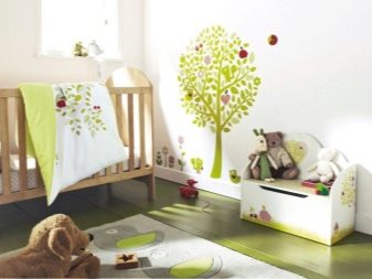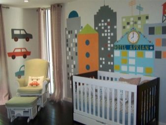 - за най -малките, декорирайки стената близо до леглото в нежни цветове, използвайки прости и големи изображения.