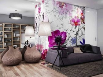 - Тапетът често се използва като един от компонентите на комбинацията. Флоралните опции ще изглеждат ярки и оригинални, а панорамата на града ще бъде класически избор;