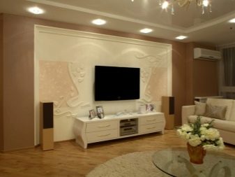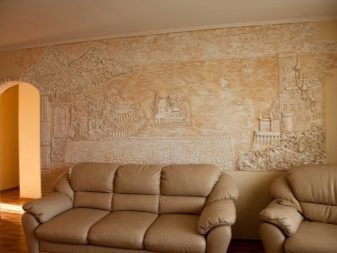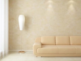 Трябва да изберете тапет, който прилича на мазилка, като се вземе предвид помещението, за което са предназначени. За залата е най -добре да изберете релефни модели в светли цветове. За големи всекидневни можете да вземете ярки вложки, които ще добавят помпозност към пространството, но в същото време няма да намалят визуалното възприятие на стаята..
