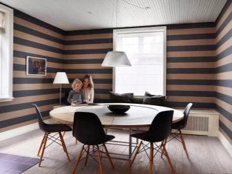 Линиите и ивиците на тапета се считат за класика на жанра. Те се прибягват, когато трябва визуално да промените размерите на стаята..
