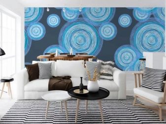 - Дизайнът в духа на минимализма или хай-тек се характеризира с абстрактни изображения, тапети с голям симетричен модел.