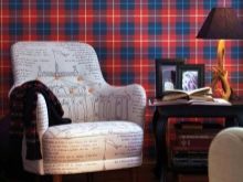 Най -популярната днес е шотландската клетка, която подчертава традицията и древността на интериора, внася в нея духа на добрата стара Англия..