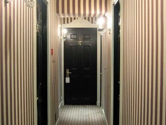 Любим вариант на дизайн за коридори е раиран или тапет за стена с шеврон (зигзаг). Малък шрифт с абстрактен модел или психеделичен ще изглежда сбит.