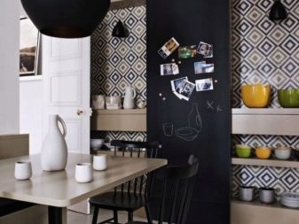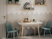 Съвременните тенденции позволяват строги геометрични шарки в кухненското пространство. Това могат да бъдат елементи на сложна компютърна графика или ефектни ромби, познати на всеки..