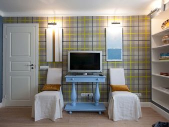 Карирана тапицерия – класика, която никога не излиза от мода. Такива тапети са доста капризни и изискват правилната комбинация от цветове.. Но, като се спрете на карирани мотиви за стените на стаята, можете да получите луксозна, уважавана и ефектна стая, в която както домакинствата, така и гостите ще бъдат удобни..