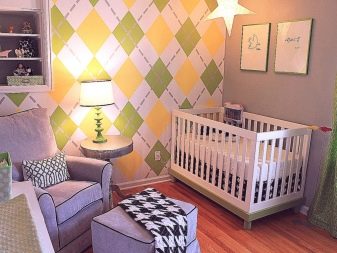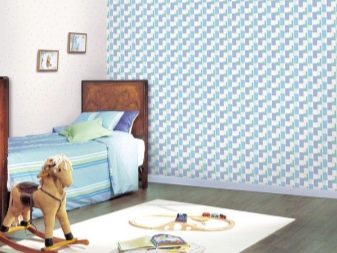 Детската стая изисква специално внимание. Ако приемем, че детската спалня се използва за различни цели, тогава е по -логично да зонирате интериора с помощта на тапети. Например, за зона за отдих и сън, изберете дискретен орнамент от приглушени тонове: малки точки в пастелни цветове, бизнес ромби, квадратчета или правоъгълници от бежово-сивия спектър.