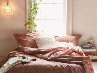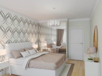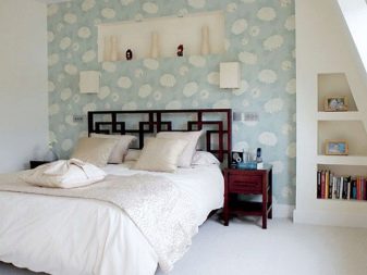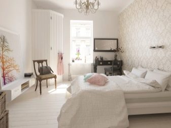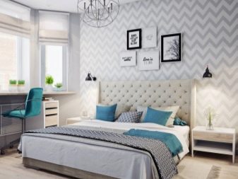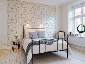 Тази стая, подобно на описаната по -горе, също е оправдана за декориране с тапети в светли и пастелни нюанси. Най -доброто решение в такава ситуация е използването на стенни покрития, украсени с флорални шарки, линии без завои или вълни – орнаменти, които правят интериора по -интересен.. В допълнение, следните прости правила могат да бъдат полезни за собственика на спалнята: