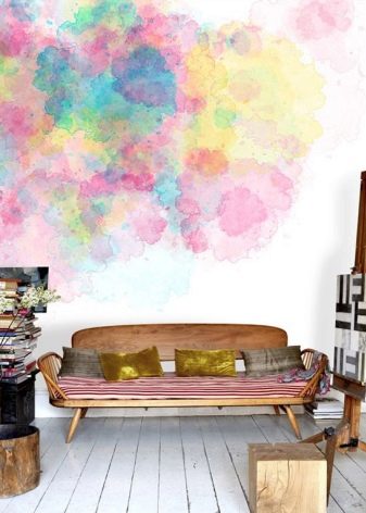 Що се отнася до ярки тапети, те са сравнително редки в представения стил. По правило такива материали се използват за фокусиране на вниманието на зрителя върху отделни елементи от интериора. Опитът показва, че тази техника е отлична за декориране на прегради, декоративни вдлъбнатини и издатини..