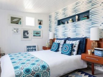 - Ако моделите на тапета не са натрапчиви, тогава стената, залепена с такива платна, може да бъде украсена с допълнителни декоративни елементи.