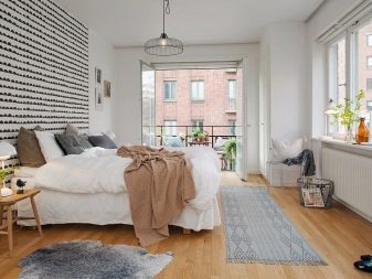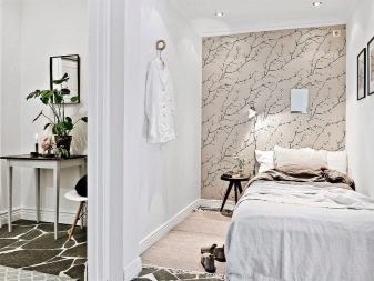 Струва си да се спомене отделно, че не се препоръчва използването на ярки тапети във вътрешността на скандинавска спалня. Причината за това е прозаична: вместо да се настройват на почивка, такива покрития действат точно обратното, стимулирайки емоционалната активност на човека. Освен това модерните спални рядко са с големи размери и следователно тапети с богати акцентни нюанси могат просто да “заглушат” други интериорни елементи.
